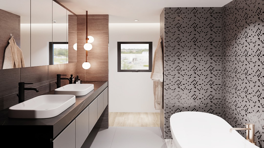 Ett avkopplande badrum med högklassiga material och smarta lösningar