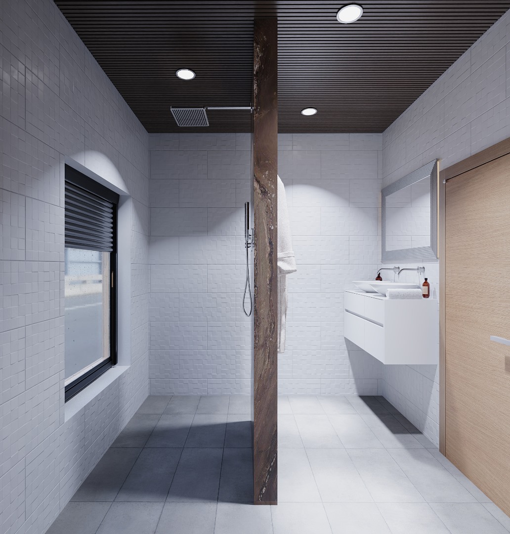 Detta lyxiga badrum är designat för att skapa en oas av avkoppling i hemmet. Med noggrant utvalda material och smarta lösningar har vi skapat ett funktionellt samtidigt som det andas elegans och lugn.